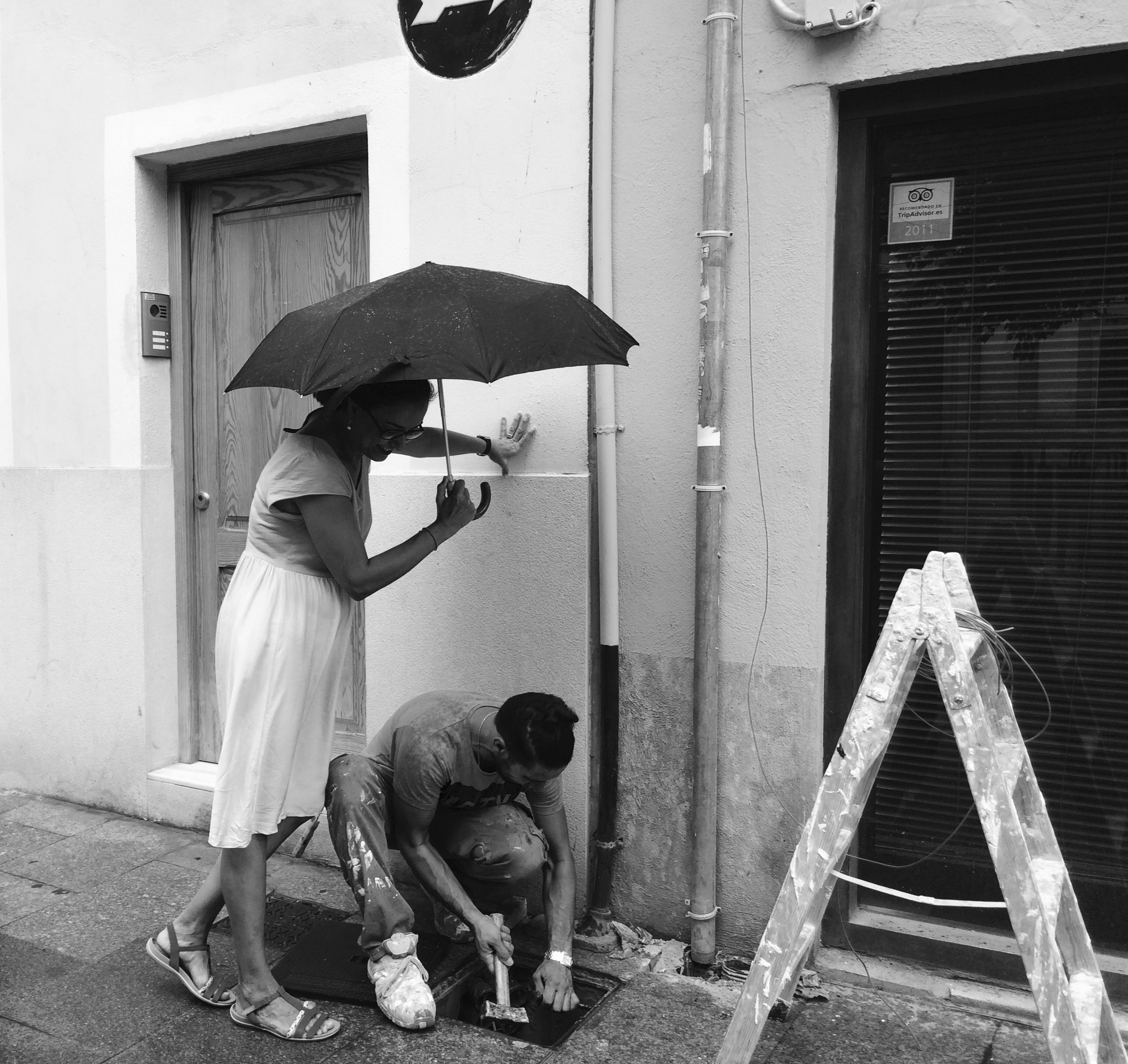 Os presento a Lucía, la chica del paragüas. Es nuestra nueva coordinadora de servicios. Ella empieza el próximo lunes pero ha llegado de visita hoy justo cuando se ponía a llover y estaban instalando la fibra óptica de 300 megas simétrica en resi 2. En resi 1 ya la hemos instalado. Esperemos que no pase nada y el lunes podamos tenerla en Resi 2 y hacer el cambio.